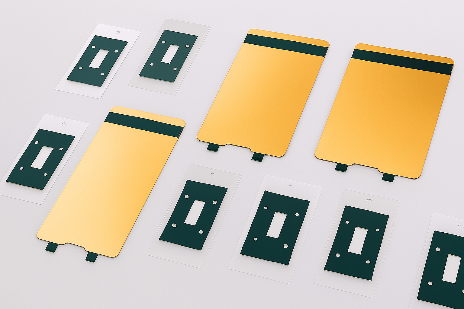 金属箔加工品 スマートフォン・パソコンなどの内部部品として使用され、電気的接続や集電体の役割をします。