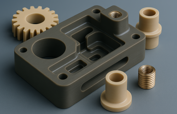 PEEKなどのスーパーエンプラの難加工を得意とし、設計支援から試作、インサート成形を含む量産対応まで一貫してサポート。