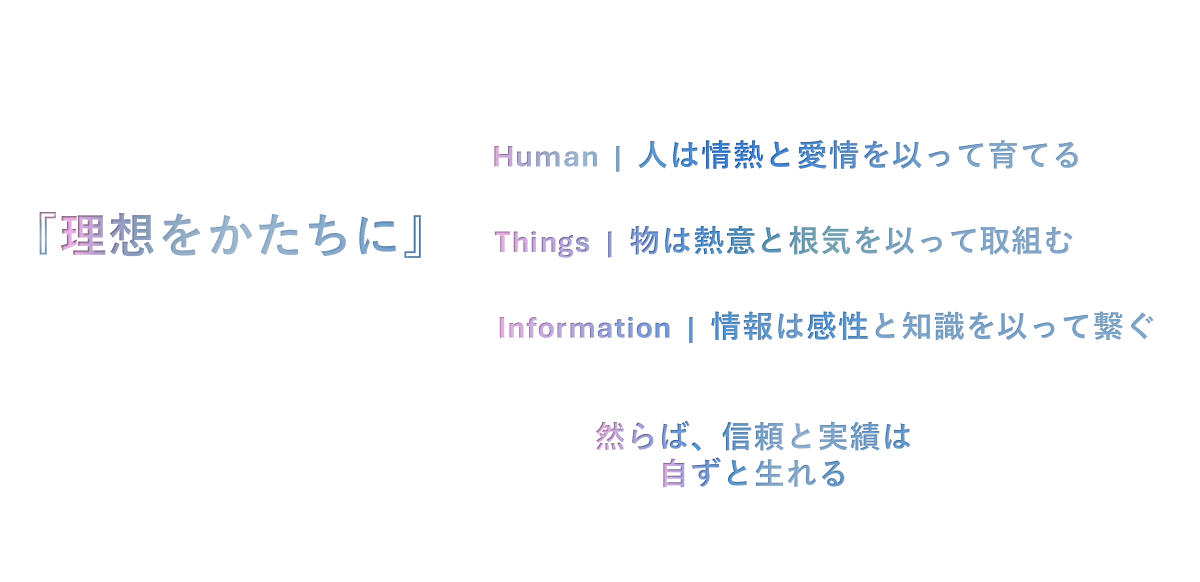 「理想をかたちに」——この言葉を胸に、私たちは未来に向けて挑戦を続けます。 安心して暮らせる社会の実現に貢献するために、技術と人の力を融合させ、持続可能な価値を創造してまいります。