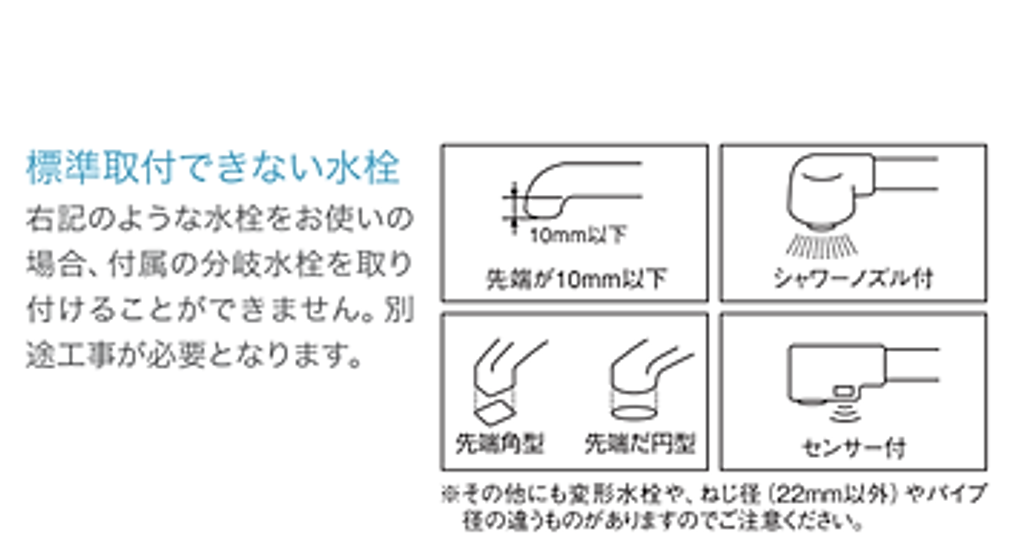 | 標準取付できない蛇口 | 本器設置+蛇口シングル分岐工事 | ¥38,100~ |